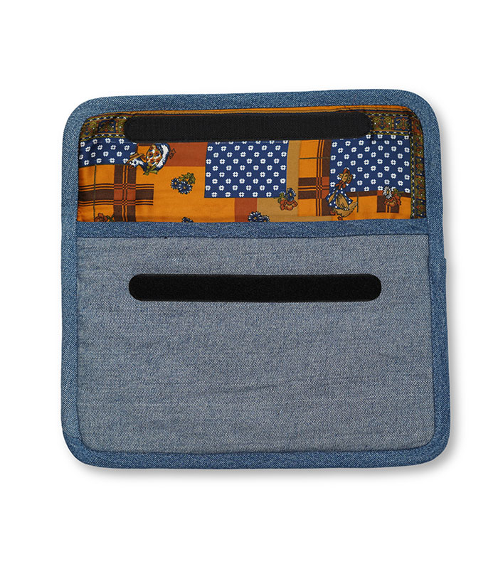 The Autumn Mosaic sleeve isn’t just for protection, it’s got character. The outer denim layer is made from repurposed products, giving it a sturdy and durable feel. Inside, a soft poly scarf lining keeps your laptop safe from scratches. The mix of textures makes each piece unique, so no two sleeves look the same.