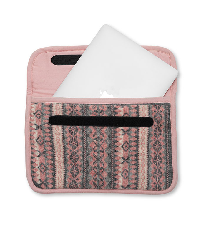 The Blush Nordic Charm Laptop Sleeve offers a warm, textured design from repurposed products, with soft fine wool lining to protect your laptop in eco-conscious style.