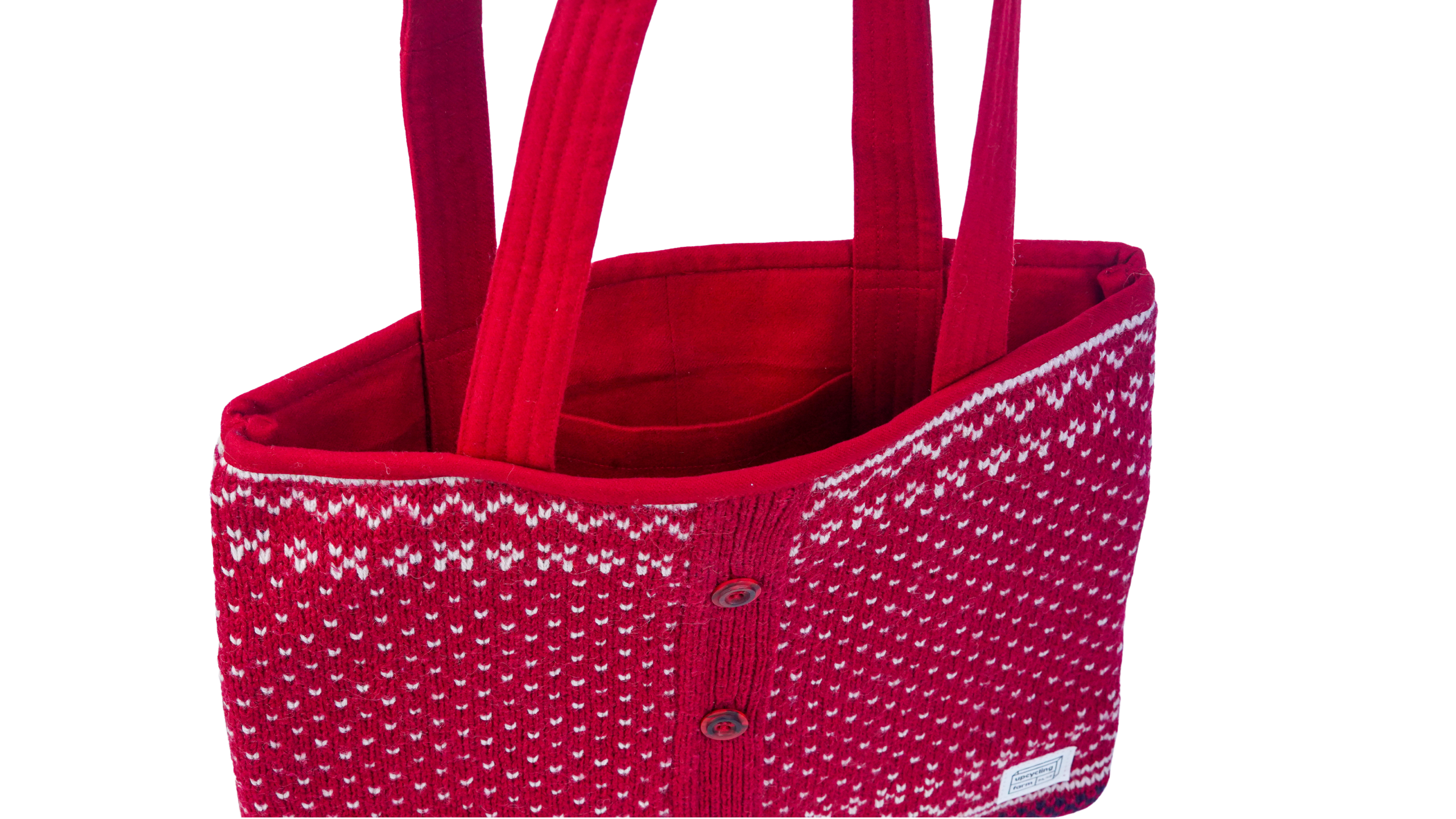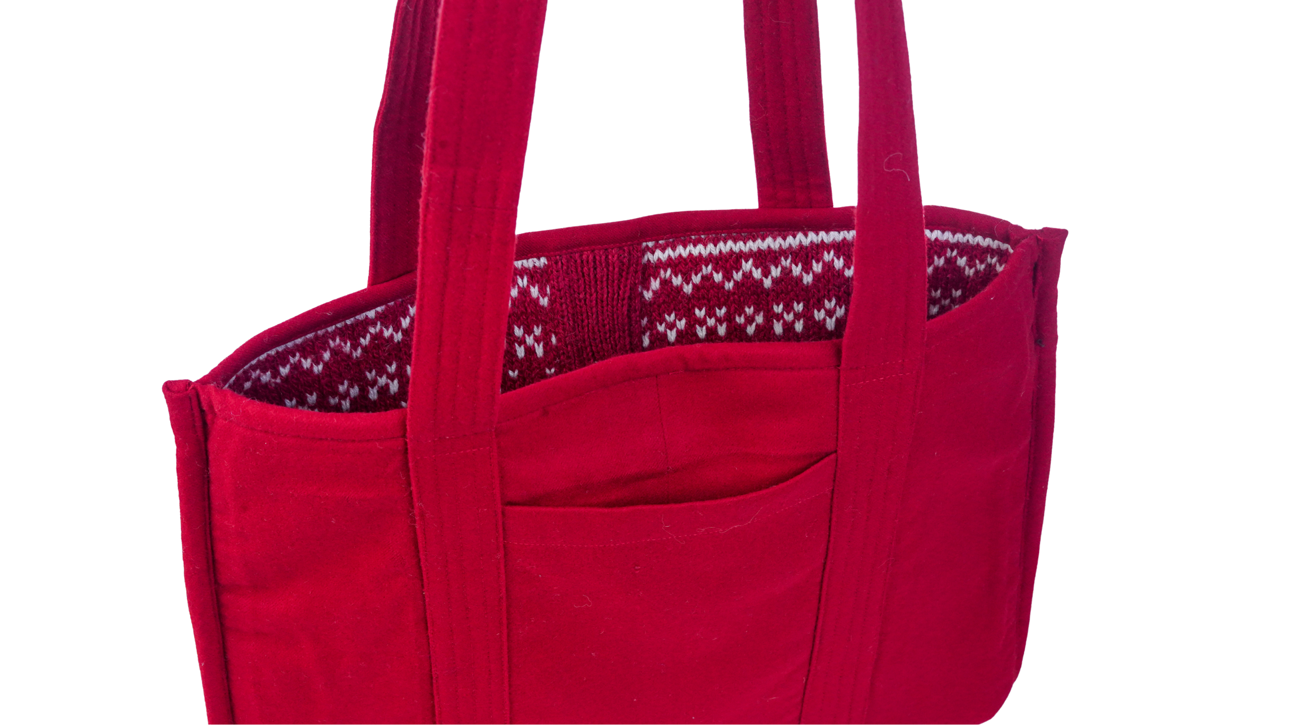 The Scarlet Keepsake Tote Bag is made from 100 percent upcycled wool, designed for everyday reliability. Fully reversible and finished with a secure interior pocket, it offers practical storage in a soft yet durable form.