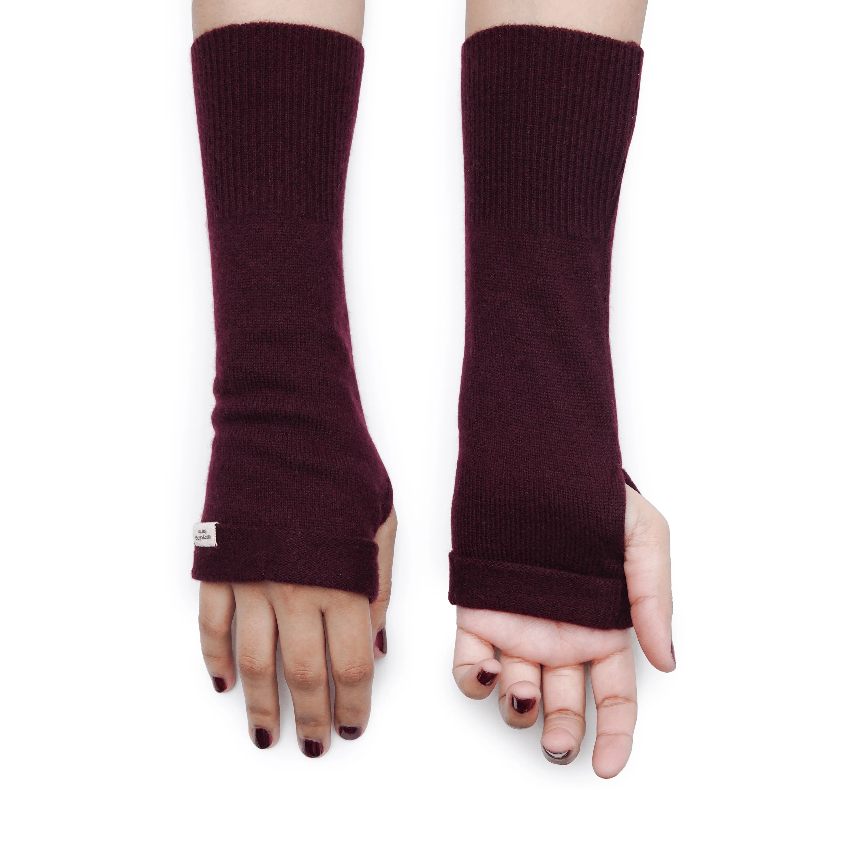 Elegant and grounded, the Burgundy Wine gloves bring warmth in a deep burgundy tone that feels both classic and refined. The soft knit drapes comfortably along the arms, creating a clean silhouette with a subtle sense of richness. Their color adds depth without overpowering, making them easy to style across seasons.
