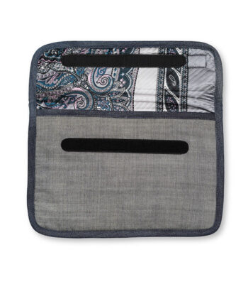 Durable denim and a soft poly scarf lining make this laptop sleeve a stylish, reliable protector for your device, adding a unique touch to your essentials.