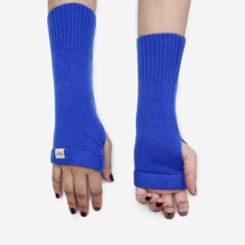 Rich blue fingerless knit gloves with a soft feel and a versatile fold-over design for everyday comfort.