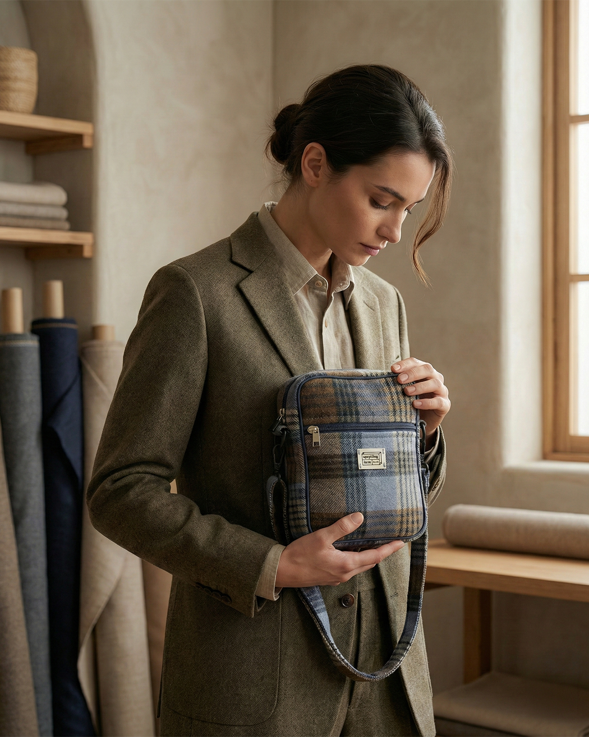 The Dark Autumn Crest Cross body Bag draws inspiration from classic tartan patterns and deep autumn tones, brought together in a clean, modern silhouette. Crafted with a pure fine wool exterior, it delivers a soft yet structured feel, while the pure cotton interior ensures comfort and durability for carrying daily essentials.