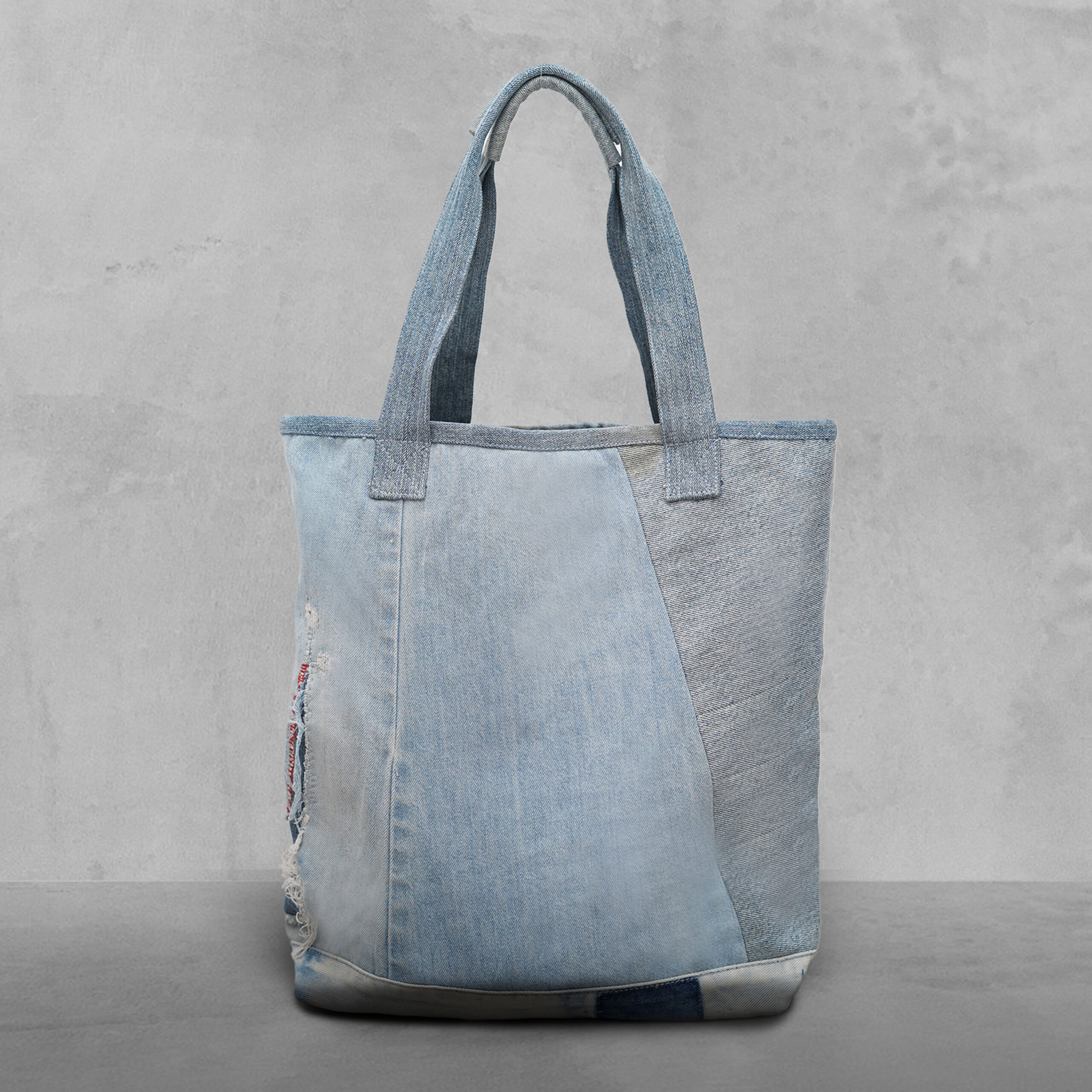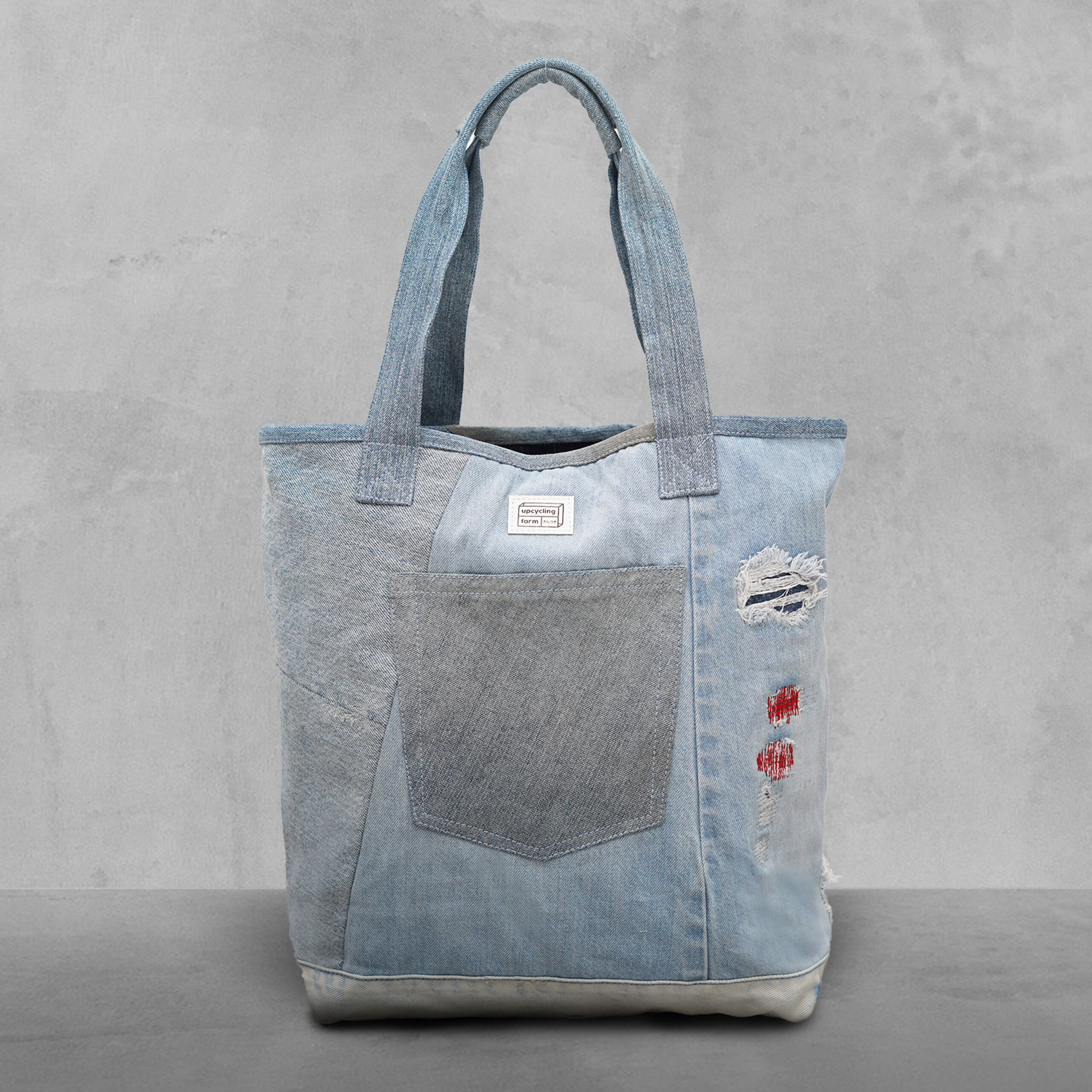 Designed for those on the move, this tote combines repurposed denim with soft wool lining for a refined yet durable carry. Its versatile design ensures you travel light while making a statement in sustainable style.