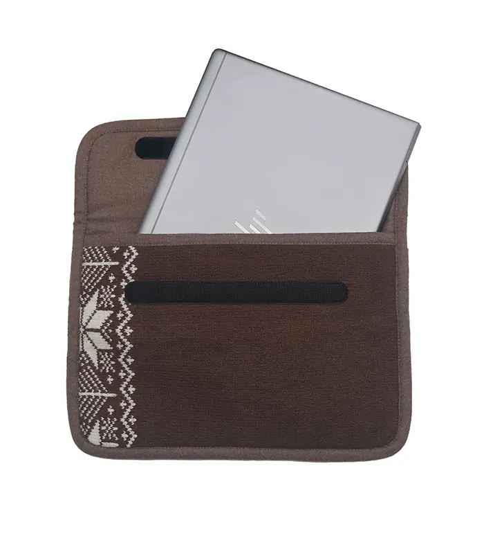 Espresso Frost brings together repurposed textures, blending a well-worn outer fabric with a soft wool-lined interior. It’s a sleeve with character made to protect, designed to be noticed.