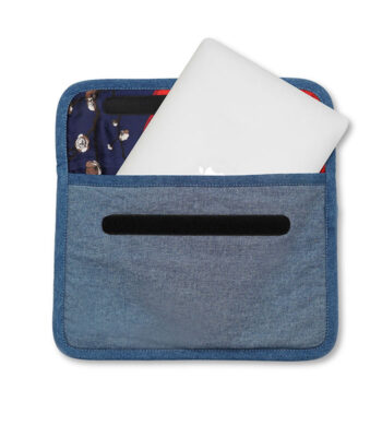 Say hello to Floral Elegance, a laptop sleeve that brings together durability and style. Crafted from sustainable dark denim, it’s tough enough to protect your laptop from scratches and bumps. The soft poly scarf lining on the inside adds a little extra care, keeping your device safe and sound. It’s lightweight, too, so you can carry it around easily.