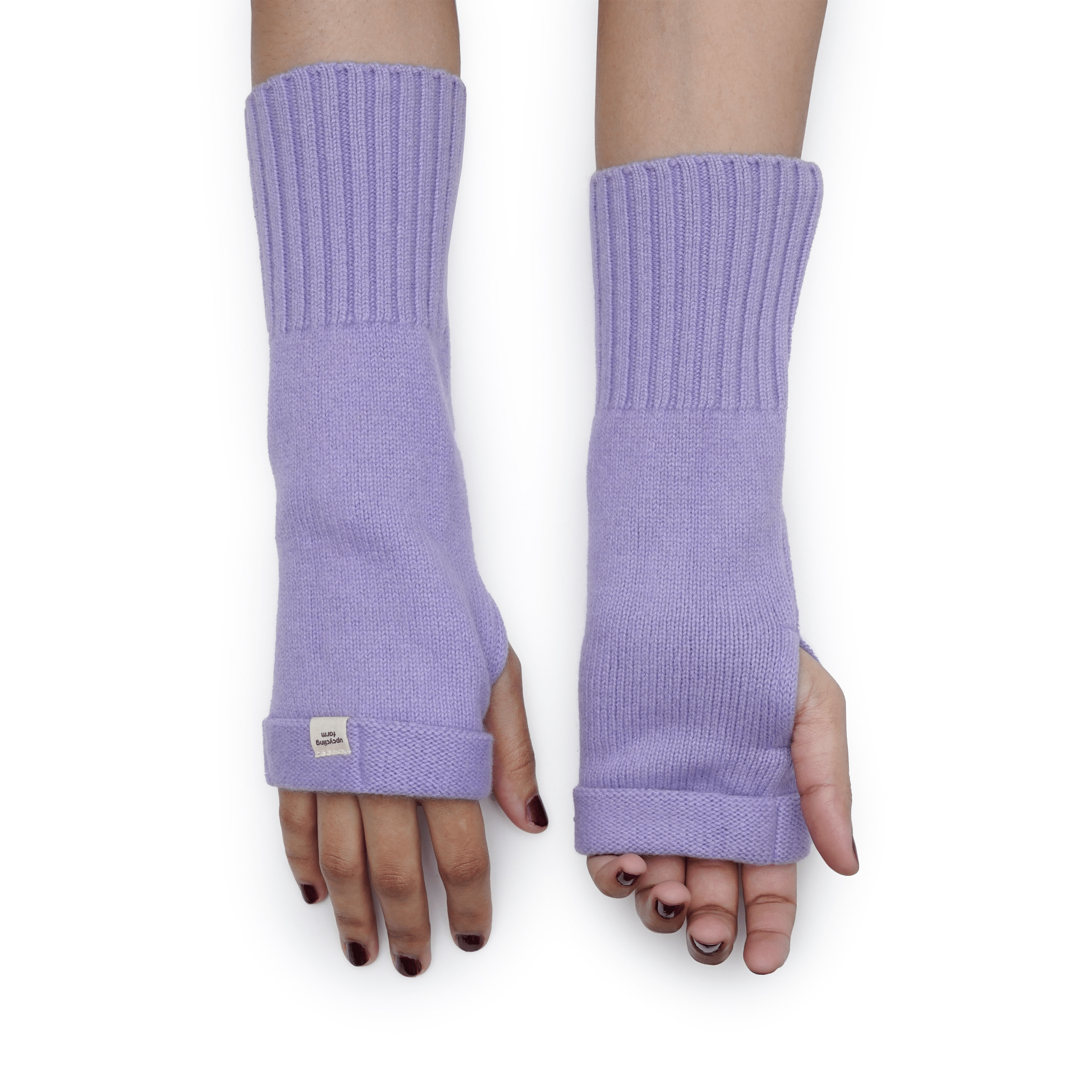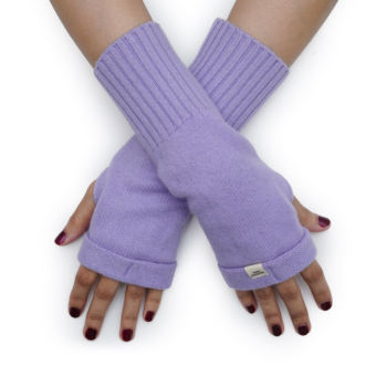 Lavender Cloud fingerless cashmere gloves in a soft lavender tone, offering gentle warmth and effortless everyday elegance.