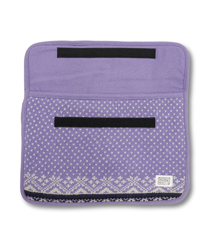 The Lavender Frost Laptop Sleeve brings a touch of serene color and sustainable design to your everyday carry. Made from repurposed knitted wool, its soft lavender exterior offers a smooth, textured feel, while its eco-conscious fabric contributes to reducing waste. The inner lining, crafted from repurposed pure fine wool, provides gentle cushioning, ensuring your laptop stays protected from scratches, dust, and minor impacts.