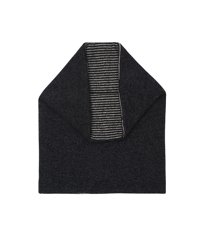 Midnight Charcoal Cashmere Snood offers deep, refined tones with plush cashmere and a reversible design for easy styling and warmth.