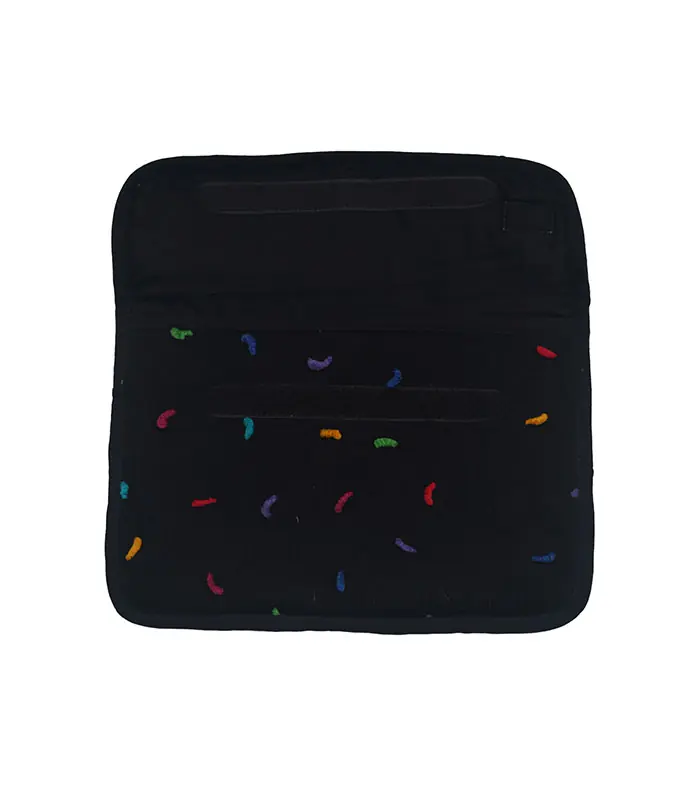 Midnight Confetti carries a bold, textured charm, combining repurposed fabrics with a layered feel. The outer material shows off a deep, rich tone, while the inside is lined with soft wool, adding a gentle contrast. Every sleeve has its own subtle variations, making each one a little different.