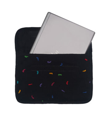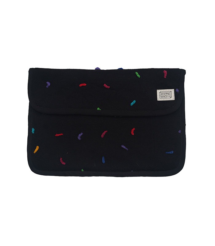 Midnight Confetti brings depth and texture with its rich-toned outer layer and soft wool lining. Crafted from repurposed materials, it offers a protective yet flexible fit, making each sleeve unique in its details.