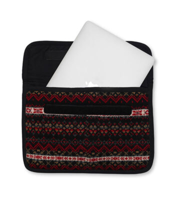 The Midnight Nordic Flair Laptop Sleeve blends Nordic-inspired design with repurposed products, offering stylish, eco-conscious protection for your laptop.
