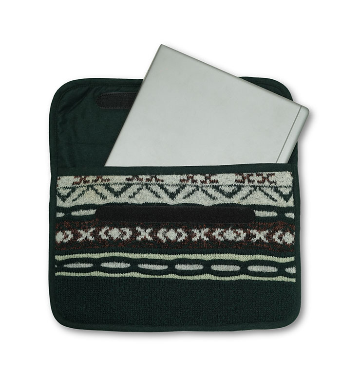 The Nordic Emerald Laptop Sleeve brings together the beauty of rich color and sustainable design, offering a bold and eco-friendly way to protect your device. Crafted from repurposed knitted wool, its vibrant emerald green exterior adds a touch of personality while providing a durable and textured surface. Inside, the repurposed pure fine wool lining cushions your laptop, guarding it against scratches, dust, and minor impacts.
