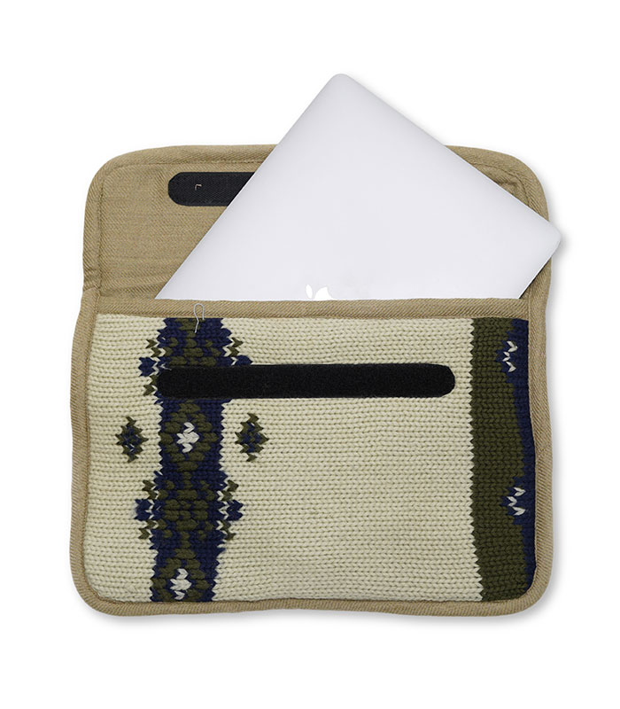 The Nordic Horizon Laptop Sleeve combines a cozy, textured finish with sustainable design, offering an elegant yet practical solution for your tech protection. Crafted from repurposed knitted wool, its exterior evokes the calming essence of Nordic landscapes with a rich, textured surface. Inside, the repurposed pure fine wool lining cushions your laptop, providing a soft and protective barrier against scratches, dust, and minor bumps.