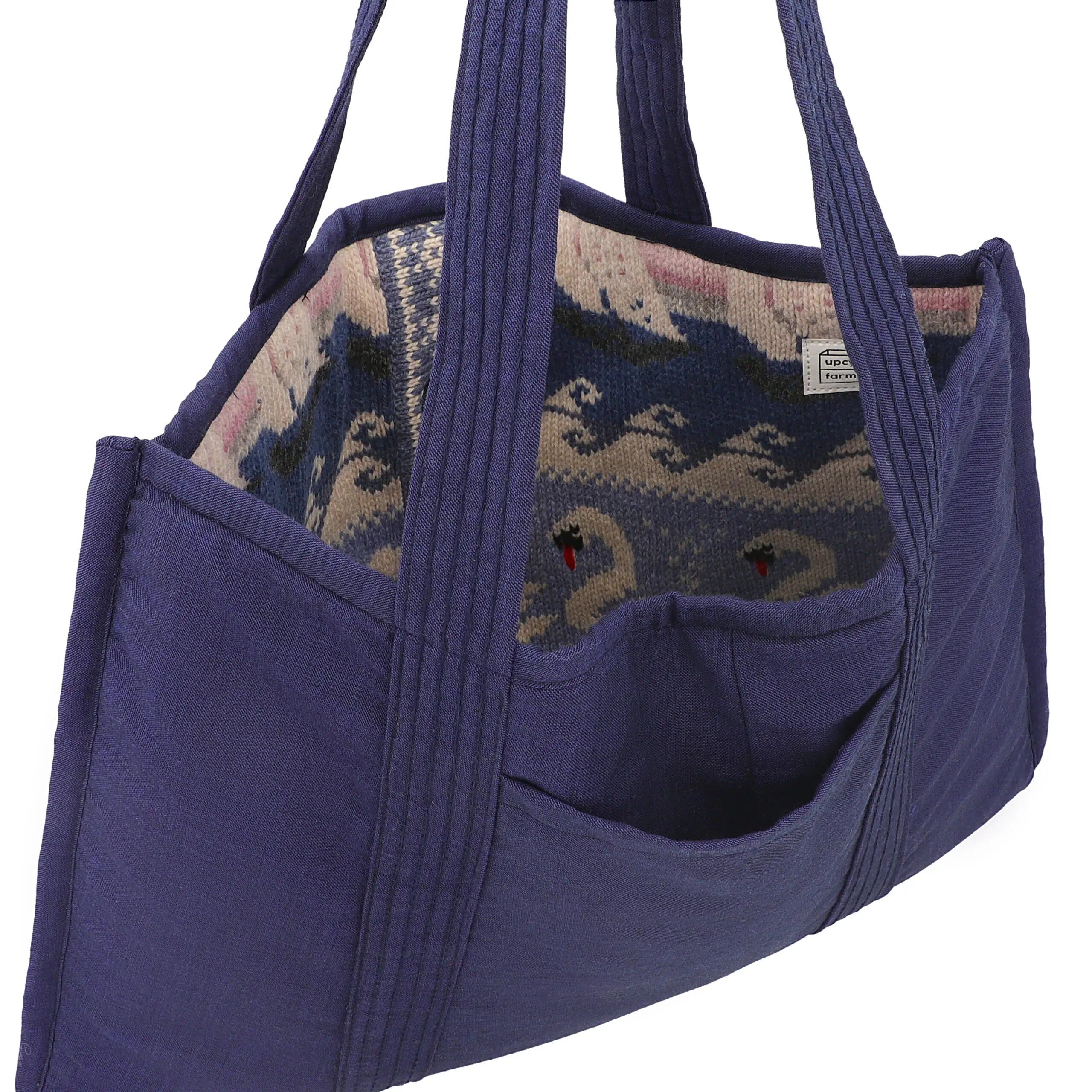 Inspired by soft winter tones and calm waters, the Nordic Swan Tote is crafted entirely from upcycled wool, giving previously used materials a new purpose. By choosing repurposed textiles, this bag supports circular fashion while offering strength and reliability for daily use.