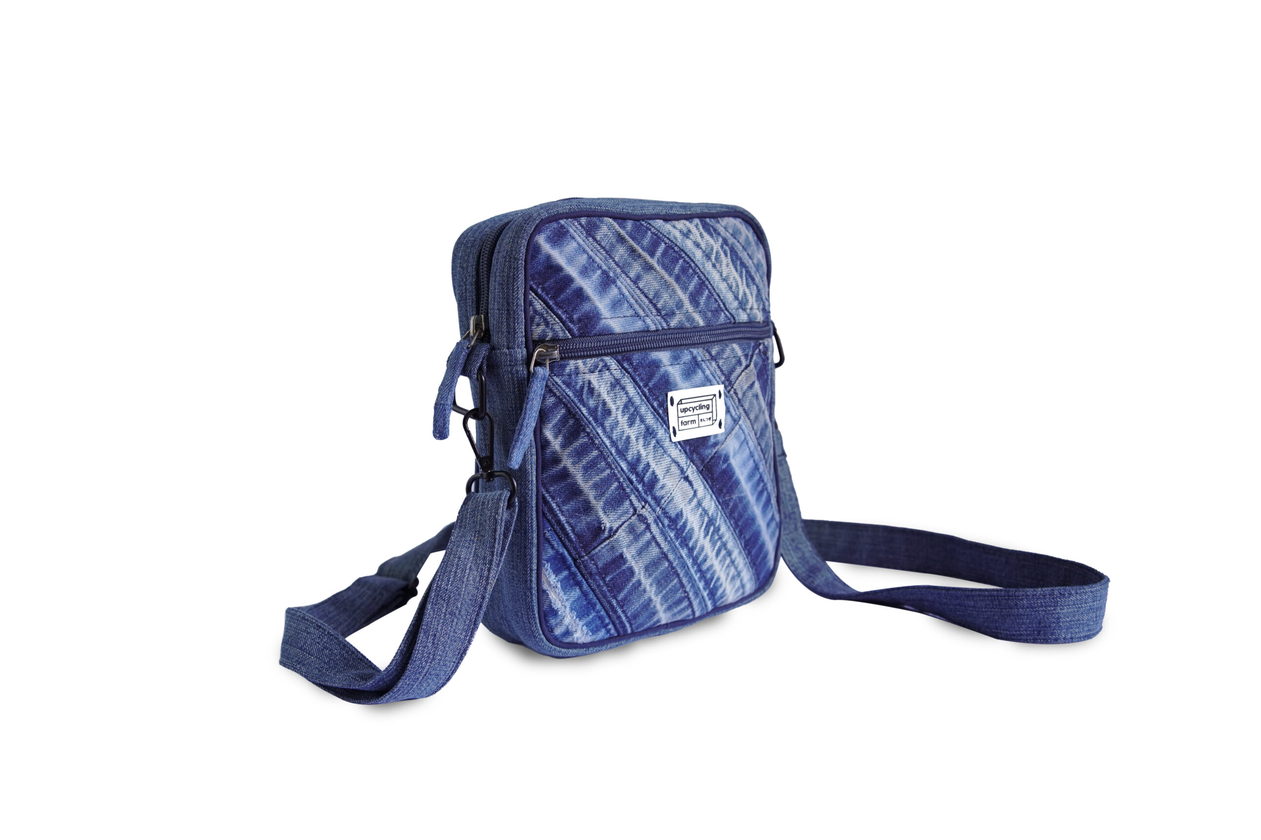 The Ocean Stitch cross body Bag features a durable denim exterior and a soft cotton interior, highlighting a striking indigo pattern with a modern stitched design. With multiple pockets and an adjustable strap, it blends expressive style with everyday practicality.