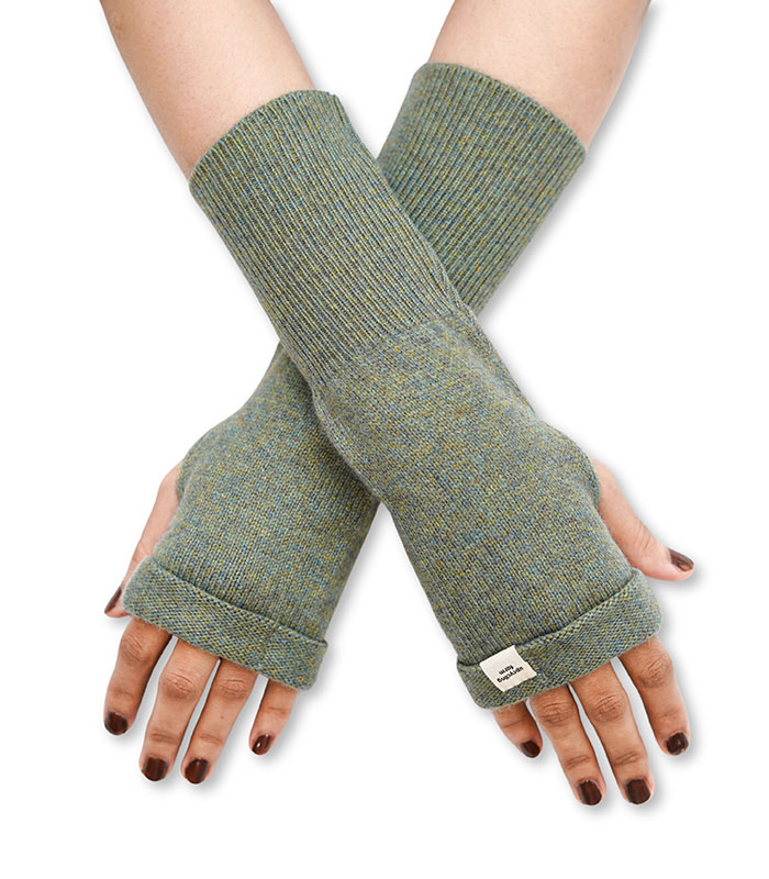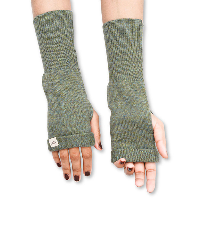 Soft and breathable, these cashmere gloves in a soothing green shade offer warmth, flexibility, and a simple yet stylish fit.