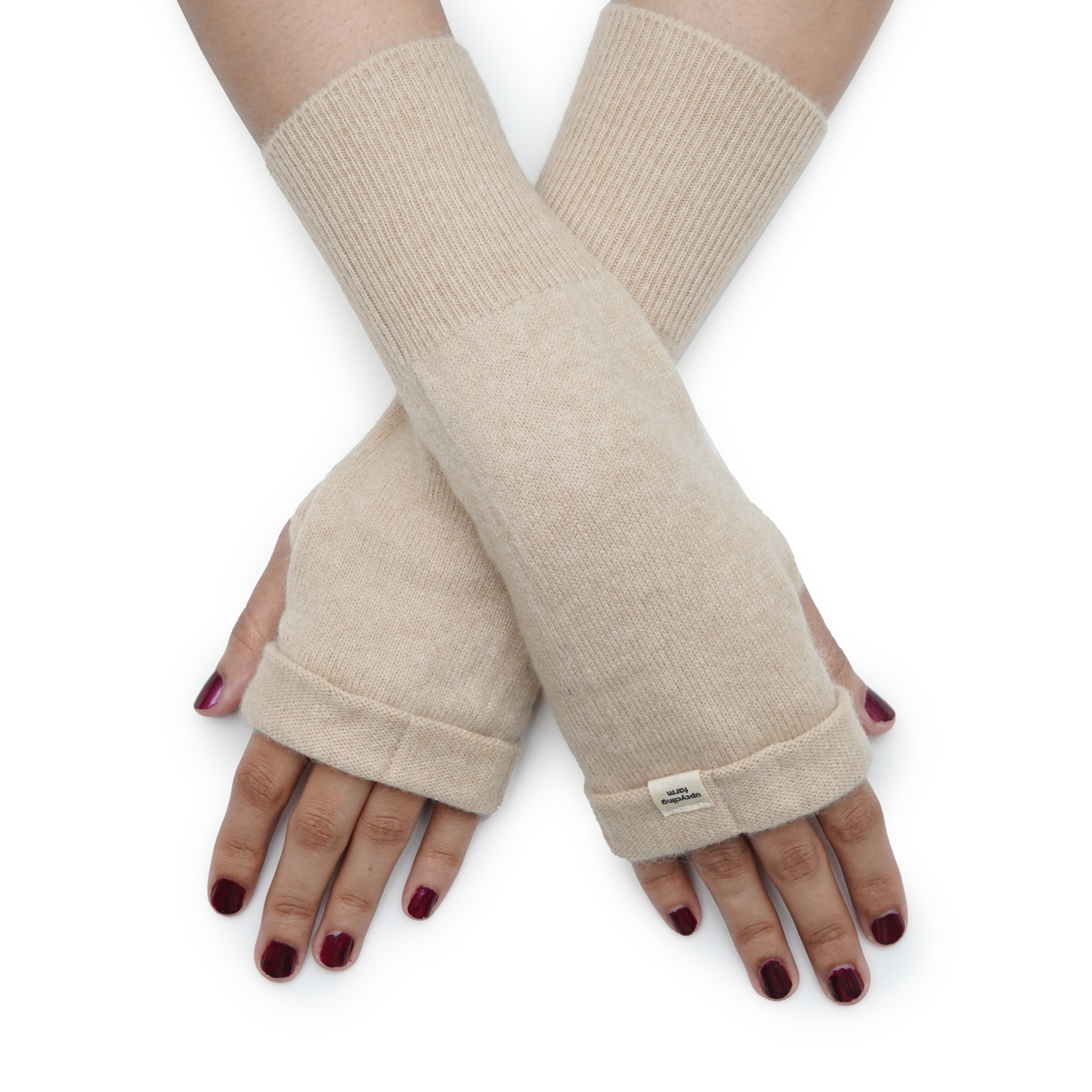 Cream-colored fingerless gloves with a soft feel, designed for everyday comfort and ease of movement.