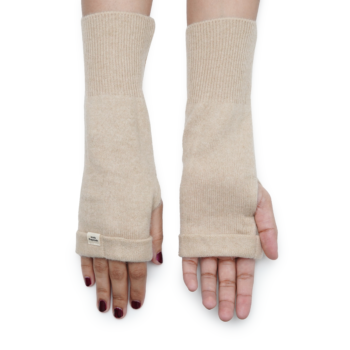Cream-colored fingerless gloves with a soft feel, designed for everyday comfort and ease of movement.
