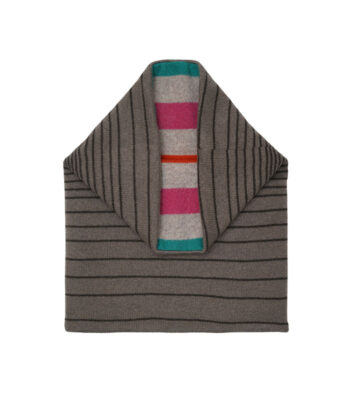 Storm Stripes Cashmere Snood features bold, dynamic stripes with ultra-soft cashmere, offering a lightweight yet striking statement piece.