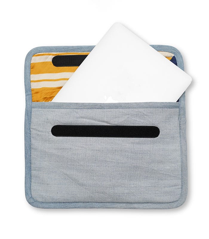 Thoughtfully crafted with repurposed materials, this sleek and durable laptop sleeve offers protection and style, perfectly complementing your modern lifestyle.