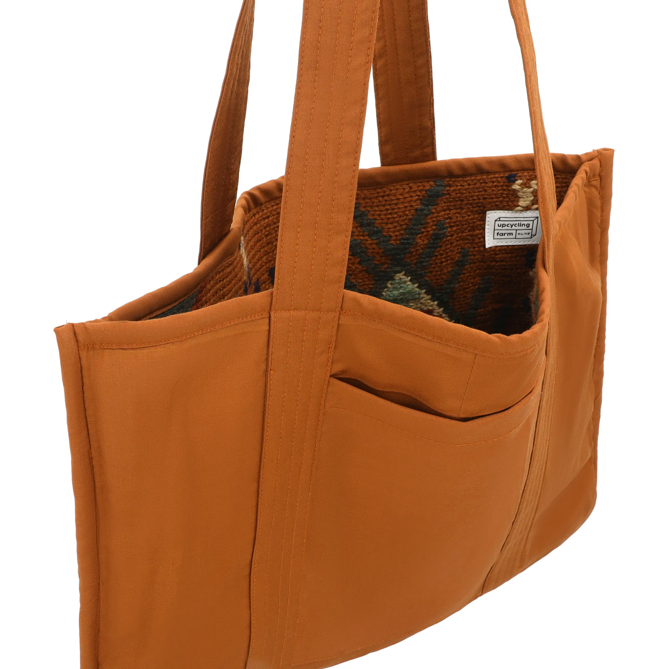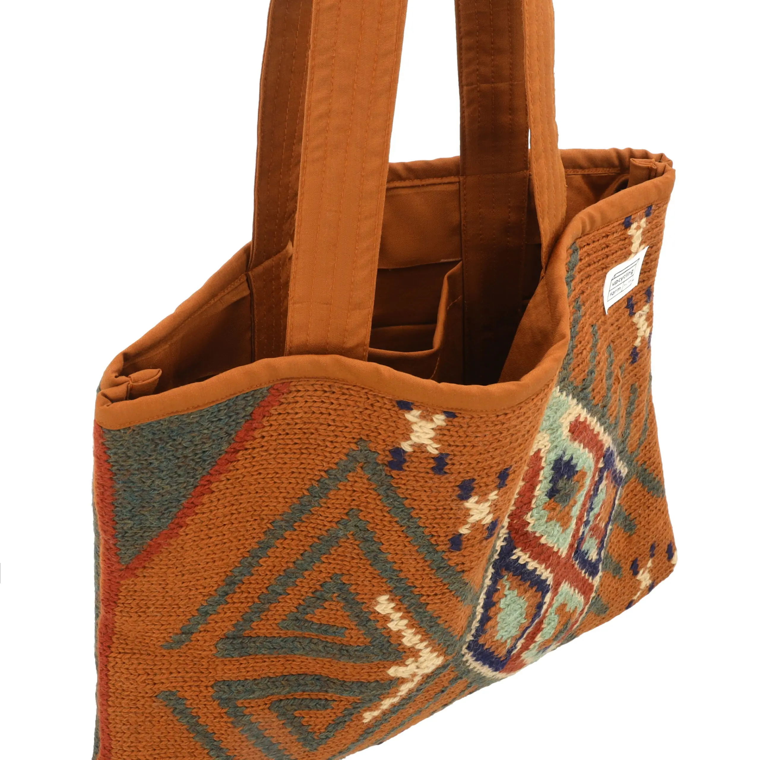 The Terracotta Trail Tote is crafted from 100% upcycled wool, combining durability with conscious design. Fully reversible and designed for everyday use, it features two unique patterns in one bag along with an interior pocket to keep your phone and cards neatly stored.