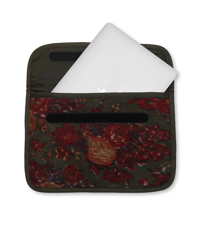 The Vintage Garden Bloom Laptop Sleeve blends nature’s beauty with eco-friendly design, providing a textured wool exterior and soft fine wool lining for protection.