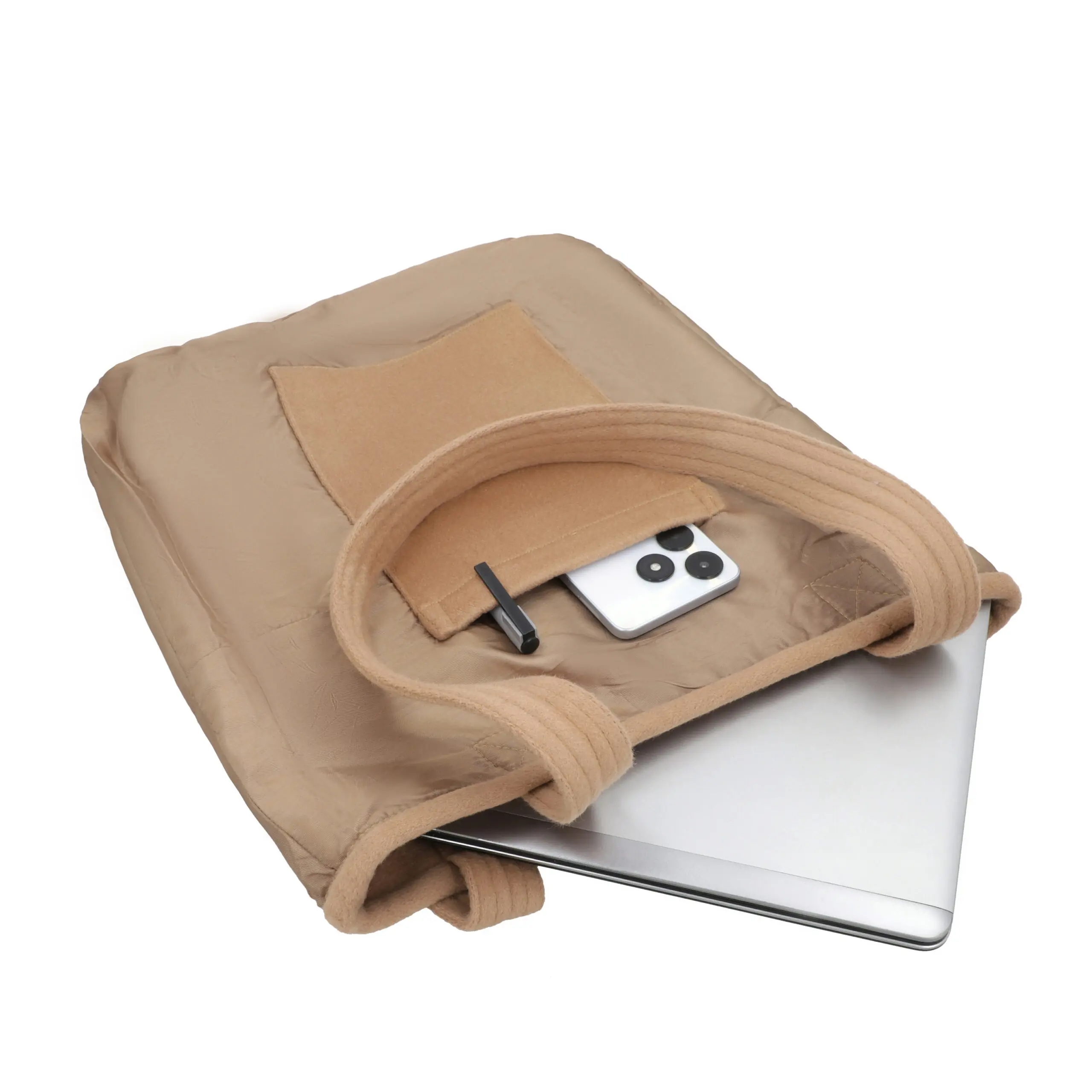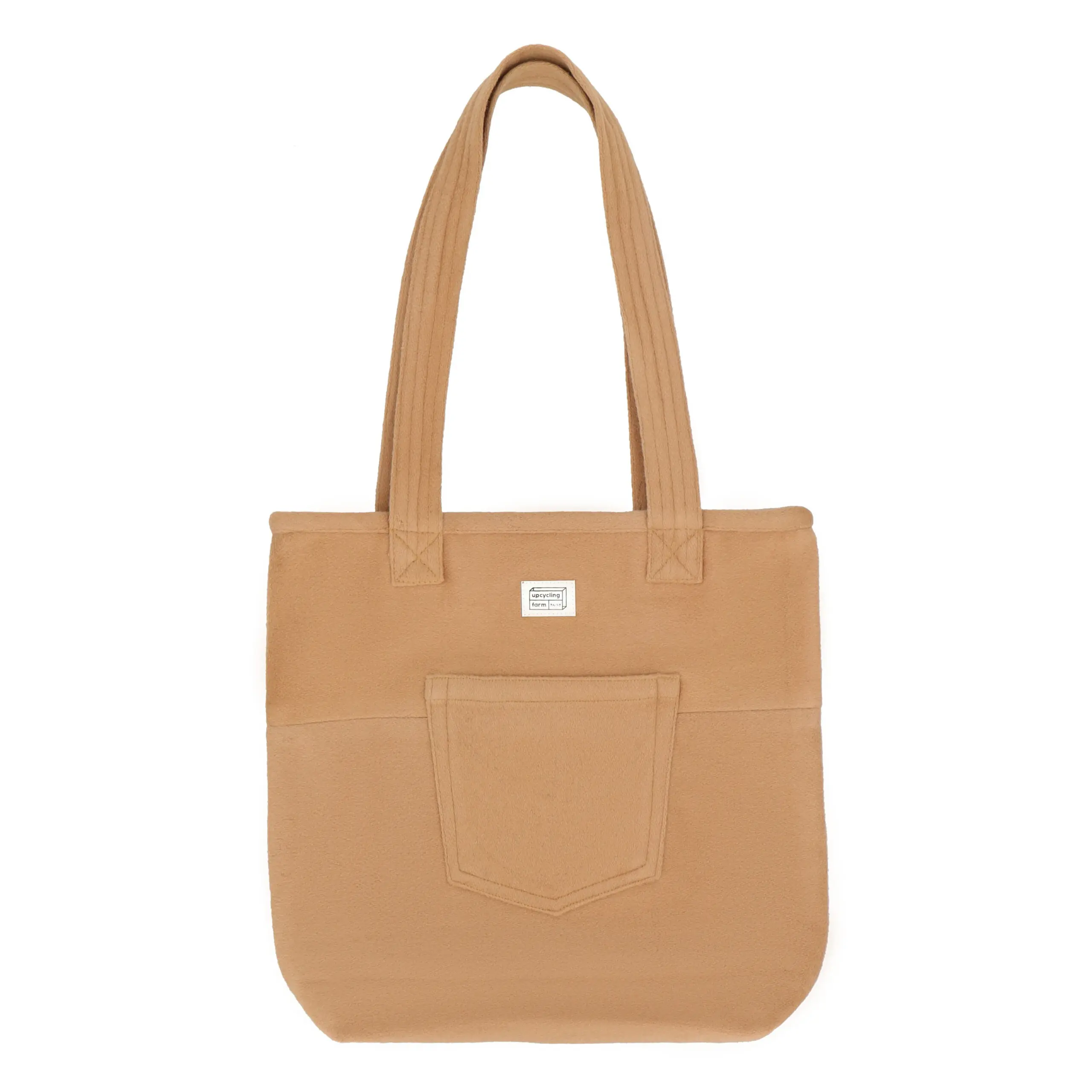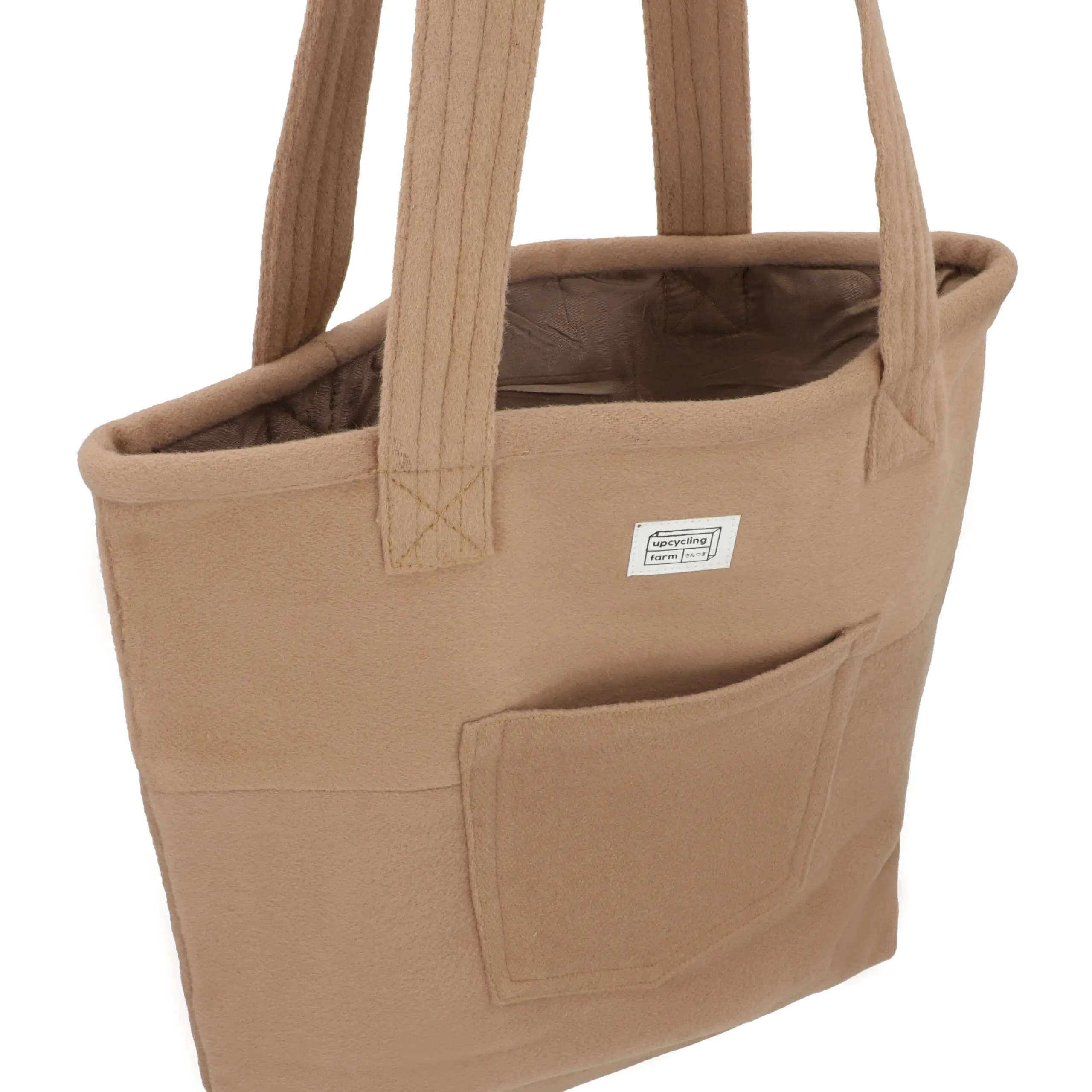 Crafted from 100% upcycled wool coats, the Warm Dune Everyday Tote features a warm camel tone and a clean, structured silhouette. Finished with a durable polyester lining and a practical inner pocket, this eco-conscious tote offers everyday functionality with a timeless, refined feel.